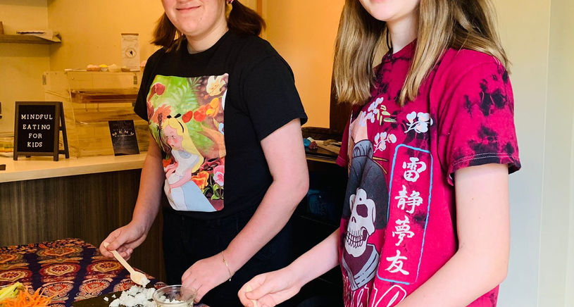 Mindful eating is a fun way to help children become more connected to their body and food. Mikaela and Chloe partnered together to empower kids to learn how to prepare a meal while exploring how to make healthy food choices. Throughout our class we explored the meaning of mindful eating and learned how to prepare plant based sushi. We started with mindful exercises, including exploring our habits around food and eating as well as feeling, touching and smelling different fruits. Our cooking class included each student learning how to roll veggie sushi, make ginger dressing and finished with apple nachos using all plant based, vegan items! We ended our time together with a sound bath mediation and aroma therapy.